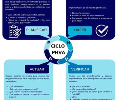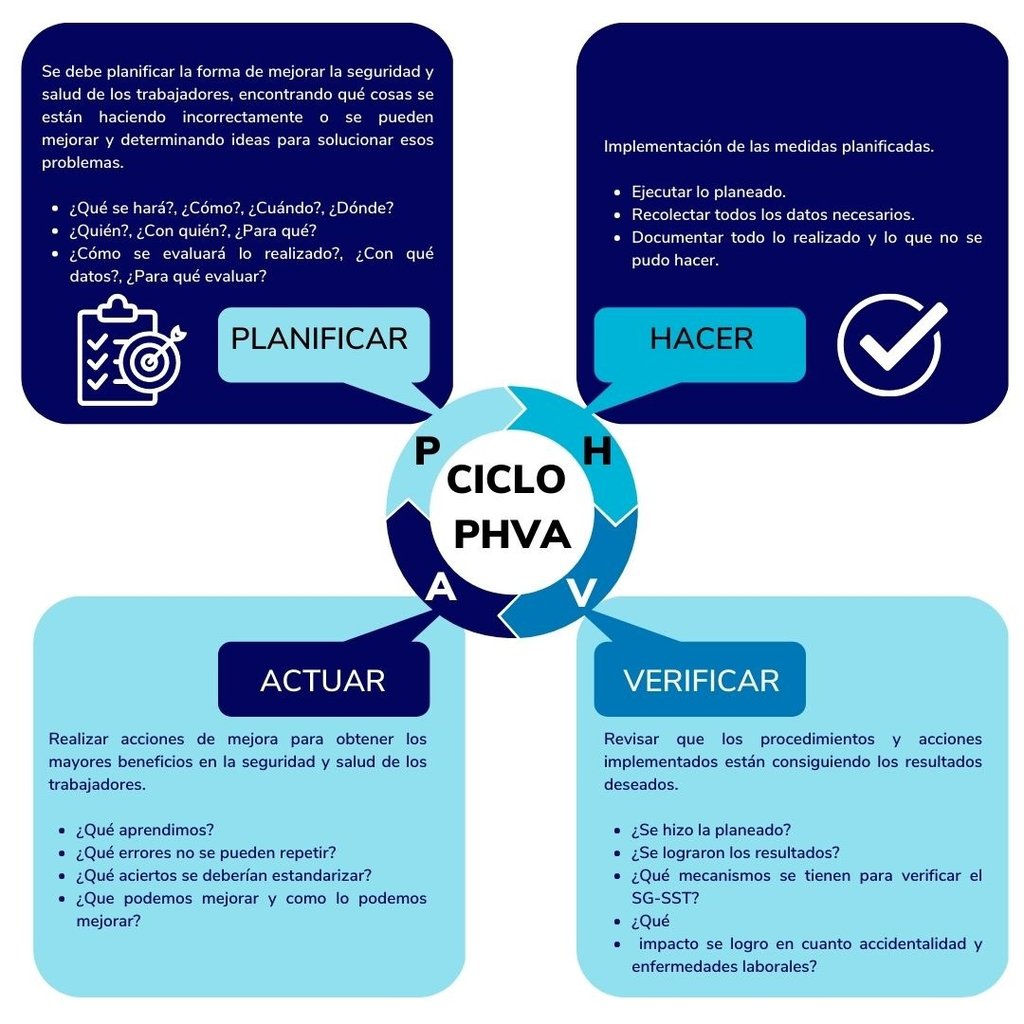 Siendo un sistema de gestión, sus principios deben estar enfocados en el ciclo PHVA (Planear, hacer, verificar y actuar).